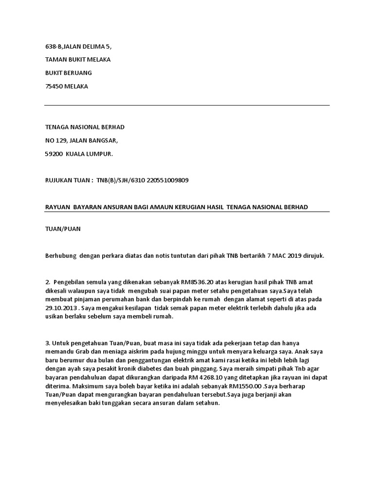 Contoh Surat Bayar Tunggakkan Kepada Tnb